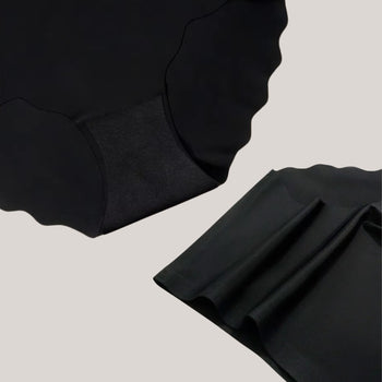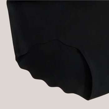 Silky seamless undies that are super cozy and cute. They are almost invisible, with only two small seams in the front that dont show. The high waisted cut adds support, and the scalloped edges are adorable. They fit perfectly under dresses. Great buy!