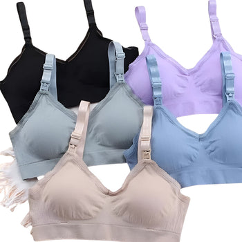 A must-have nursing bra with a perfect blend of function and style, supportive underwire, delicate lace details, and easy-open clasps for discreet and comfortable breastfeeding.